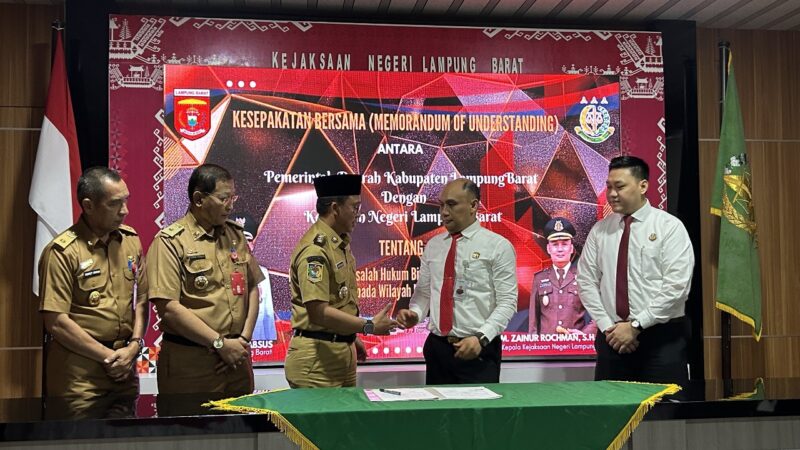 Nasionaldetik.com,- 14 Juli 2025 – Dalam upaya memperkuat sinergi antar lembaga dalam penanganan masalah hukum, Pemerintah Kabupaten Lampung Barat dan Kejaksaan Negeri (Kejari) Lampung Barat menandatangani Memorandum of Understanding (MoU) terkait Penanganan Masalah Hukum Bidang Perdata dan Tata Usaha Negara (TUN). Penandatanganan ini dilaksanakan pada Senin, 14 Juli 2025, pukul 09.00 WIB bertempat di Aula Kejaksaan Negeri Lampung Barat, Kecamatan Balik Bukit, Kabupaten Lampung Barat.