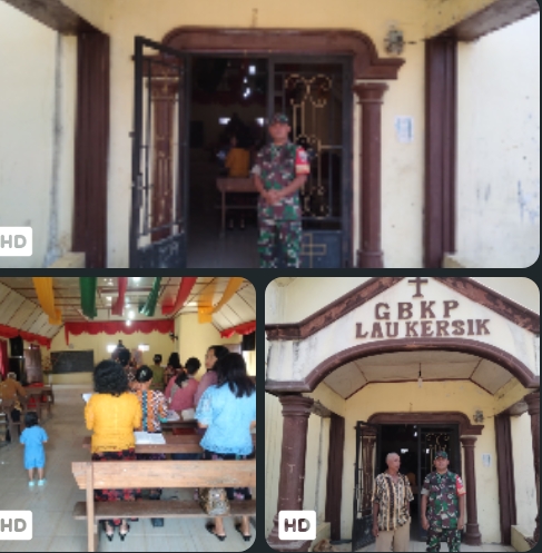 — Sebagai bentuk nyata komitmen TNI dalam menjaga kerukunan umat beragama dan menciptakan rasa aman di tengah masyarakat, Babinsa Koramil 04/Tigalingga Kodim 0206/Dairi, Sertu R. Damanik, melaksanakan tugas pengamanan Ibadah Minggu umat Kristiani di Gereja GBKP Desa Bukit Lau Kersik, Kecamatan Gunung Sitember, Kabupaten Dairi, pada Minggu, 3 Agustus 2025.