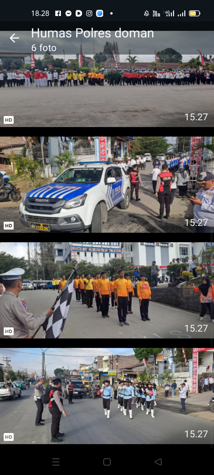 Kegiatan gerak jalan ini diikuti oleh ratusan peserta dari berbagai kalangan, mulai dari pelajar se-Kabupaten Karo, instansi pemerintah, organisasi masyarakat, hingga personel Polres Tanah Karo yang tampil bersemangat dan kompak.