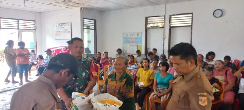 Babinsa Dampingi Penyaluran Beras Bulog Untuk 67 KK di Desa Sopobutar