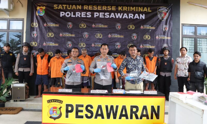 Nasional detik.com,Pesawran Lampung – Polres Pesawaran, Polda Lampung, berhasil mengungkap 13 kasus tindak pidana sepanjang Agustus 2025 dengan mengamankan 9 tersangka. Hal ini dipaparkan dalam press release di Mapolres Pesawaran, Jumat (22/8/2025), yang dipimpin Wakapolres Kompol Sugandhi Satria Nugraha, S.I.P., M.H., mewakili Kapolres AKBP Heri Sulistyo Nugroho, S.I.K., M.I.K., bersama Kabag Ops Kompol Hendra Gunawan, S.H., M.H., dan Kasat Reskrim Iptu Pande Putu Yoga M. S.Tr.K., M.H.
