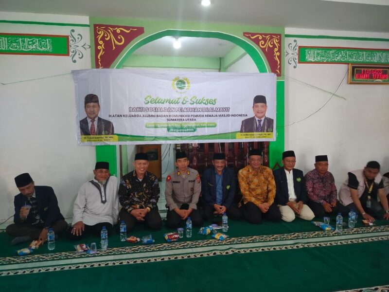 Polres Tanah Karo memberikan apresiasi dan dukungan penuh terhadap kegiatan Bakti Sosial dan Pelatihan Bilal Mayit yang diselenggarakan oleh Ikatan BKPRMI (Badan Komunikasi Pemuda Remaja Masjid Indonesia) Sumatera Utara, Sabtu (23/8) di Masjid Nurul Islam, Desa Tiganderket, Kecamatan Tiganderket, Kabupaten Karo.