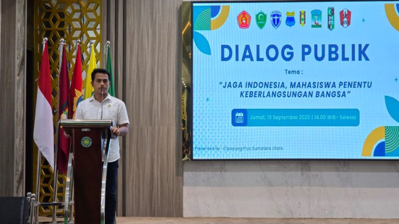 Nasionaldetik.com,— Berkaca dari aksi unjuk rasa yang belakangan marak terjadi di berbagai wilayah di Indonesia dan berujung anarkis sampai terjadi penjarahan dan vandalisme Cipayung Plus Sumut menggelar Dialog Publik bertema “Jaga Indonesia, Mahasiswa Penentu Keberlangsungan Bangsa”, Jumat (19/9) di Gedung Dakwah Muhammadiyah Sumut Jalan Sisingamangaraja Medan. Dialog publik yang dihadiri sekitar 200 peserta ini menghadirkan dua Narasumber yakni, Muhammad Ikhyar, SH Aktivis ’98 dan Sekretaris Forum Keluarga Alumni Ikatan Mahasiswa Muhammadiyah (Fokal- IMM) Sumut, Ahmad Khairuddin, M.Si.