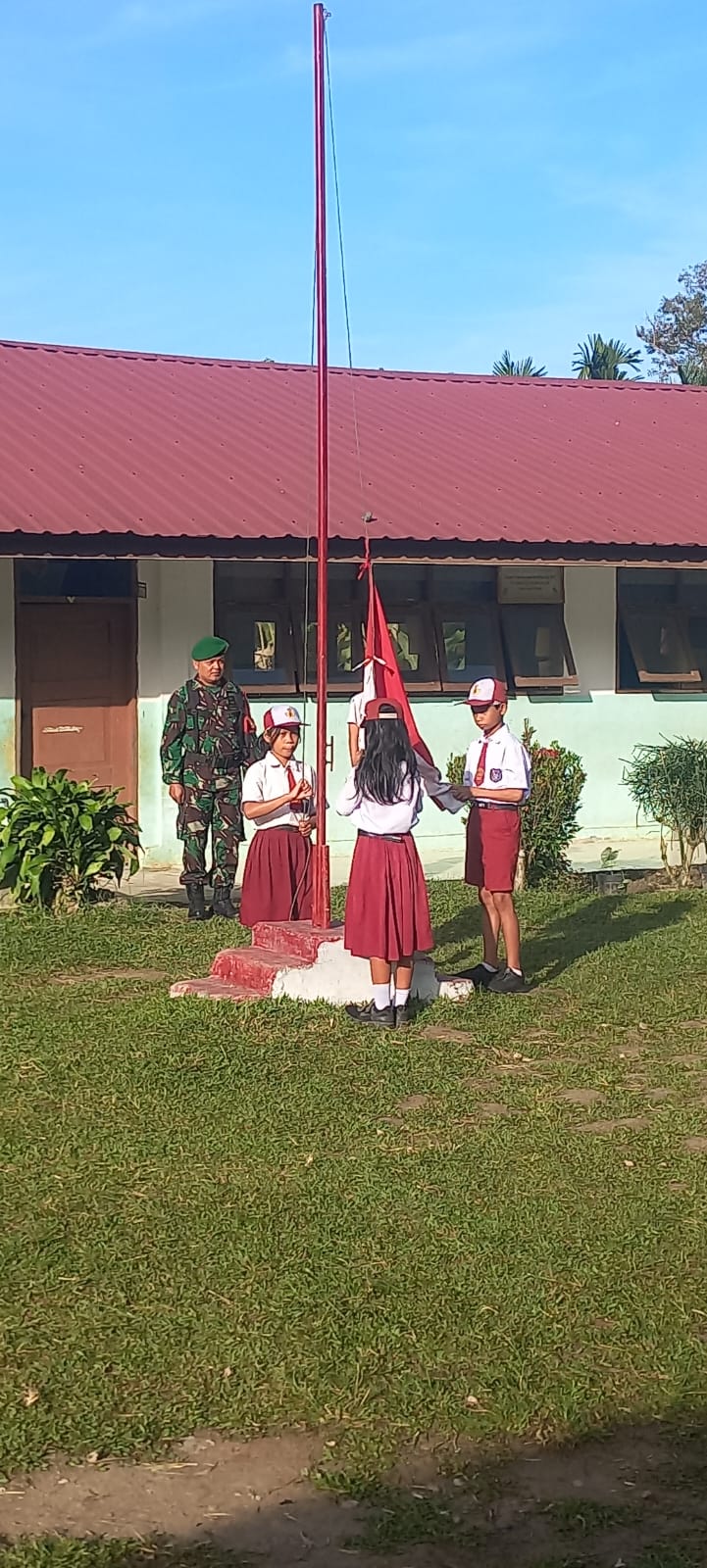 Babinsa Koramil 04/Tigalingga Tanamkan Semangat Cinta Tanah Air Kepada Siswa SD di Siempat Nempu Hulu