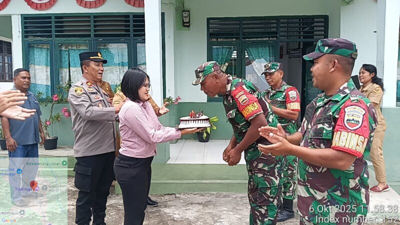 – Suasana penuh keakraban menyelimuti Markas Koramil 04/Tigalingga, Kodim 0206/Dairi, Senin (6/10/2025), ketika personel TNI dikejutkan oleh kedatangan Kapolsek Tigalingga, Iptu Parlindungan Lumbantoruan, bersama Camat Tigalingga, Saut Marganda Sinaga, yang datang membawa kue ulang tahun dalam rangka memperingati HUT ke-80 Tentara Nasional Indonesia (TNI) tahun 2025.