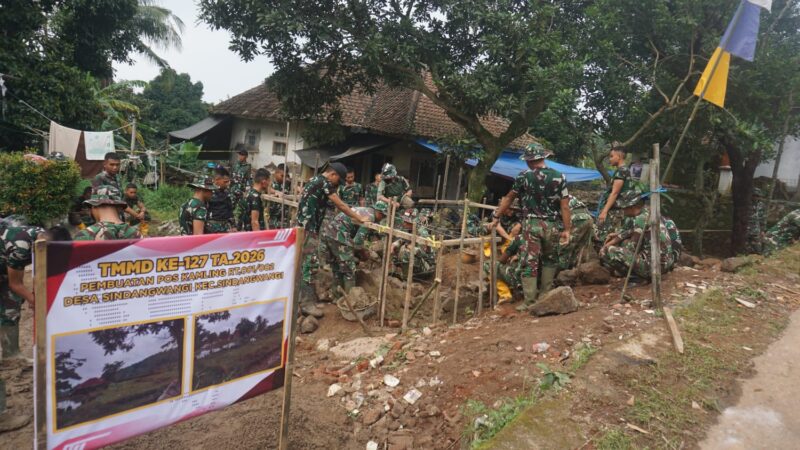 Nasionaldetik.com, – Dengan penuh semangat dan kerja keras, Satgas TNI Manunggal Membangun Desa (TMMD) ke-127 Kodim 0617/Majalengka terus melanjutkan pembangunan infrastruktur di Desa Sindangwangi, Kecamatan Sindangwangi, Kabupaten Majalengka. Pada Kamis (12/2/2026), personel Satgas tampak bercucuran keringat saat membangun pondasi pos keamanan lingkungan (pos kamling) sebagai bagian dari sasaran fisik program TMMD.