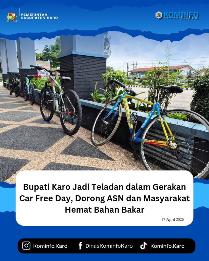 — Pemerintah Kabupaten Karo menggelar Car Free Day sebagai upaya mendorong penghematan bahan bakar sekaligus membangun kesadaran penggunaan energi secara bijak. Bupati Karo, Brigjen Pol (Purn.) Dr. dr. Antonius Ginting, Sp.OG., M.Kes., turut memberi teladan dengan semangat “memimpin dengan memberi contoh”, mengajak ASN dan masyarakat memulai langkah kecil seperti mengurangi penggunaan kendaraan pribadi.