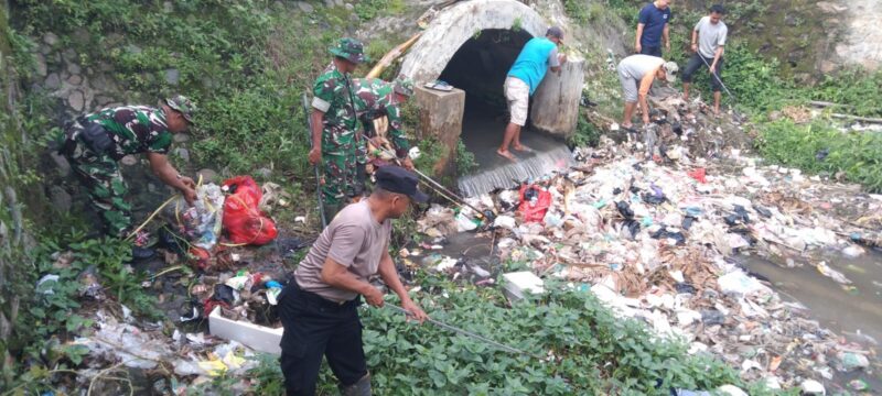 Danramil Leuwimunding Pimpin Karya Bakti Bersihkan Sungai Ciwaringin Peringati HUT ke-76 Korem 063/Sunan Gunung Jati