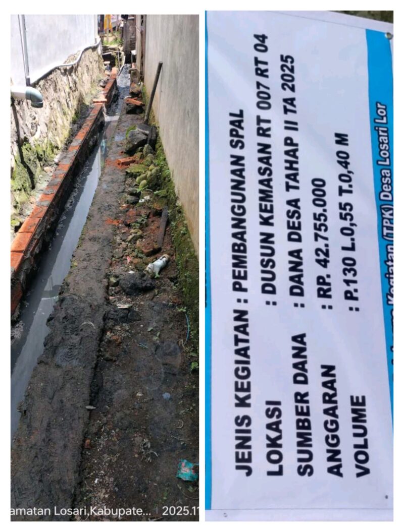 Cirebon //nasionaldetik.com – pembangunan saluran air di desa Losari lor sesuai dengan RAB,karena dalam pemasangan dengan memakai batu merah.kamis 20/11/2025