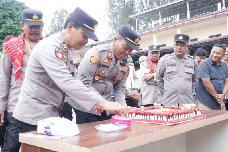 – Suasana apel pagi di Mapolres Karo, Kamis (30/4), terasa berbeda dari biasanya. Di tengah barisan yang rapi dan penuh disiplin, terselip momen hangat penuh kebersamaan, perayaan ulang tahun sederhana sekaligus pelepasan dua personel yang memasuki masa purna bakti.