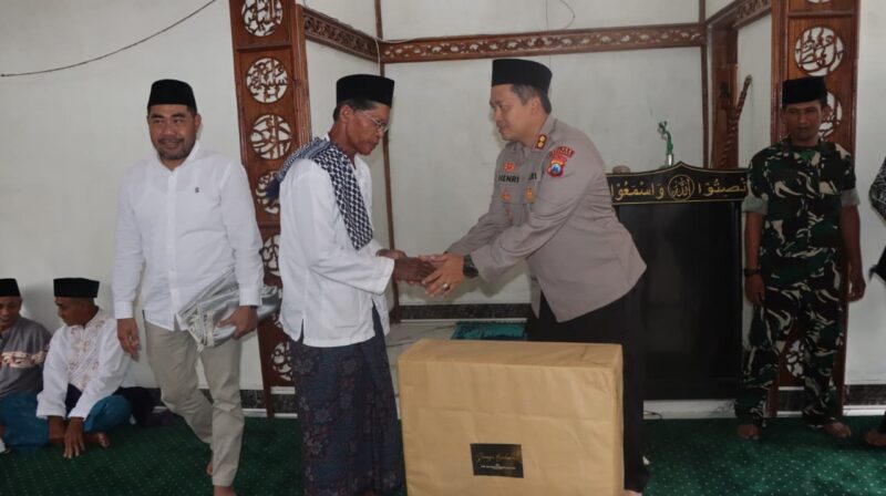 Sebagai penutup kegiatan, Kapolres Nganjuk menyerahkan sarana kontak berupa perlengkapan ibadah kepada pengurus Masjid Sabilal Muhtadin sebagai bentuk dukungan terhadap kegiatan keagamaan dan kenyamanan jamaah.