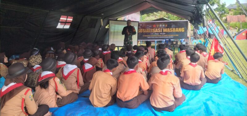 Kegiatan tersebut merupakan bagian dari program nonfisik TMMD yang bertujuan membangun karakter generasi muda sekaligus menanamkan nilai-nilai cinta tanah air sejak dini.