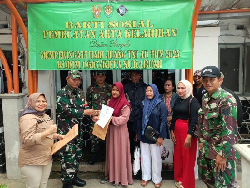 Nasionaldetik.com,— Dalam rangka memperingati Hari Juang TNI Angkatan Darat Tahun 2025, Kodim 0607/Kota Sukabumi melaksanakan kegiatan Bakti Sosial Pembuatan Akte Kelahiran bertempat di Dinas Kependudukan dan Pencatatan Sipil (Disdukcapil) Kota Sukabumi(Selasa, 02 Desember 2025).