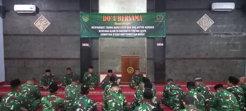 Nasionaldetik.com, – Kodim 0617/Majalengka menggelar doa bersama dalam rangka menyambut Tahun Baru 2026 sekaligus mendoakan keselamatan para korban bencana alam di wilayah Sumatera. Kegiatan tersebut dilaksanakan pada Rabu (31/12/2025) bertempat di Masjid Al-Ikhlas Makodim 0617/Majalengka, Jalan KH Abdul Halim No. 403, Kelurahan Tonjong, Kecamatan Majalengka.