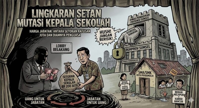 Nasionaldetik.com,– 07 Maret 2026 Dunia pendidikan di Kota Prabumulih kembali diguncang isu miring yang mencoreng integritas akademis. Praktik “jual-beli” jabatan atau setoran pengamanan posisi Kepala Sekolah SMA/SMK mencuat ke permukaan dengan angka fantastis mencapai Rp200 juta. Isu ini mencerminkan adanya celah korupsi yang sistematis di lingkungan Pemerintah Provinsi Sumatera Selatan.