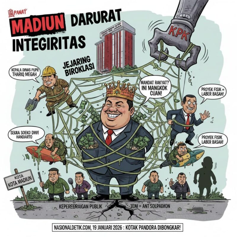Nasionaldetik.com,– 19 Januari 2026 Integritas birokrasi di Kota Madiun berada di titik nadir. Komisi Pemberantasan Korupsi (KPK) melakukan tindakan tegas dengan mengamankan 15 orang dalam sebuah operasi yang mengungkap dugaan praktik lancung di lingkaran kekuasaan tertinggi kota tersebut.