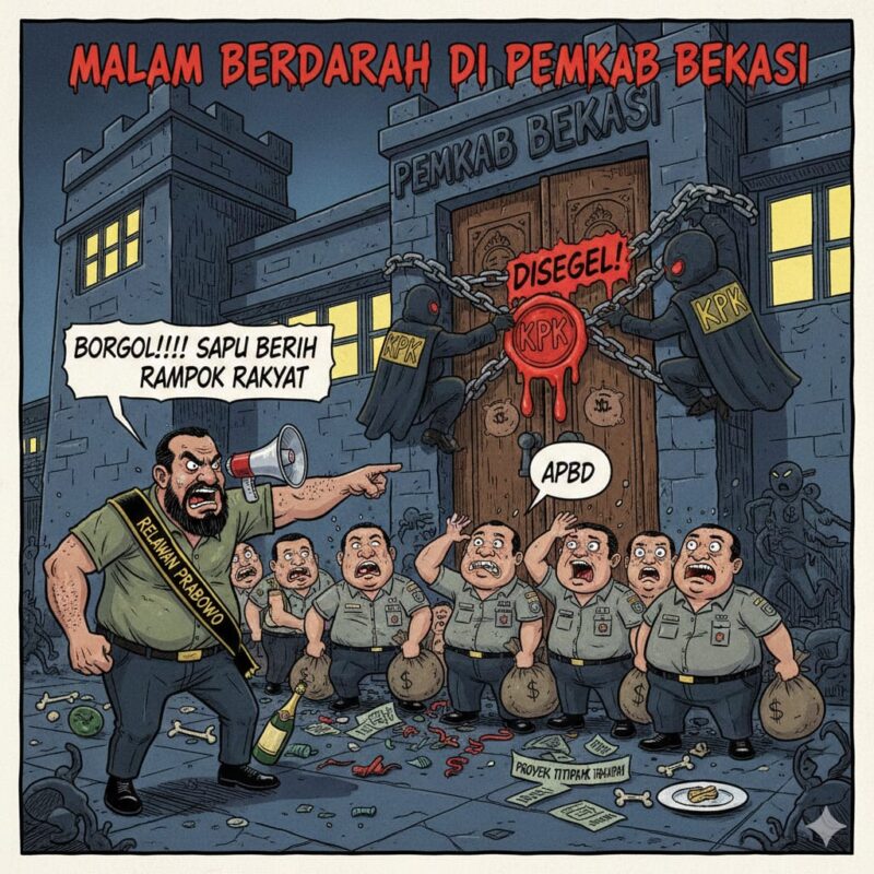 Nasionaldetik.com,— Kekuasaan runtuh dalam senyap. Kamis malam (18/12), Komisi Pemberantasan Korupsi (KPK) menusuk tepat ke jantung Pemerintah Kabupaten Bekasi. Ruang kerja Bupati Bekasi Ade Kuswara Kunang disegel, dua pintu dikunci negara, dan kekuasaan yang selama ini terasa kebal hukum mendadak lumpuh total.