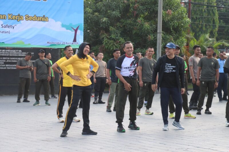 Nasionaldetik.com, – Dalam rangka memperingati Hari Keselamatan & Kesehatan Kerja (K3) Sedunia yang jatuh pada 28 April 2026, para aparat TNI-Polri serta jajaran pemerintah Kabupaten Majalengka menggelar olahraga bersama di Lapangan Apel Polres Majalengka, Jalan KH Abdul Halim No. 518, Kelurahan Cigasong, Kecamatan Cigasong, Kabupaten Majalengka, Selasa (28/4/2026).