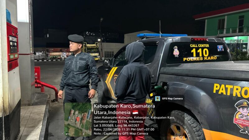 – Dalam rangka menjaga stabilitas keamanan dan ketertiban masyarakat, jajaran Polres Karo melaksanakan patroli malam pada Rabu(22/4/2026) sekira pukul 23.00 WIB di sejumlah titik rawan di wilayah Kota Kabanjahe.