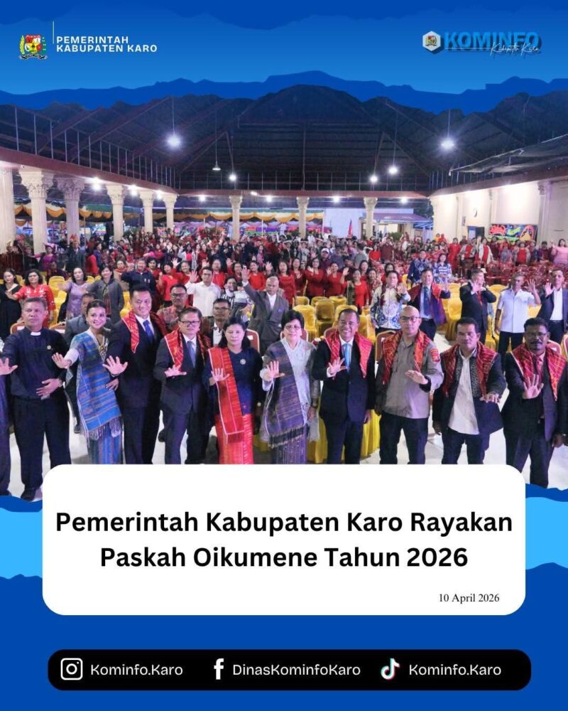 – Pemerintah Kabupaten Karo Rayakan Paskah Oikumene Tahun 2026. Setelah 15 tahun Paskah Oikumene tidak terlaksana tahun ini dapat diwujudkan melalui perjalanan Via Dolo Rosa dan dilanjutkan dengan kebaktian paskah di Jambur Milala Mas. Jumat (10/04/26).
