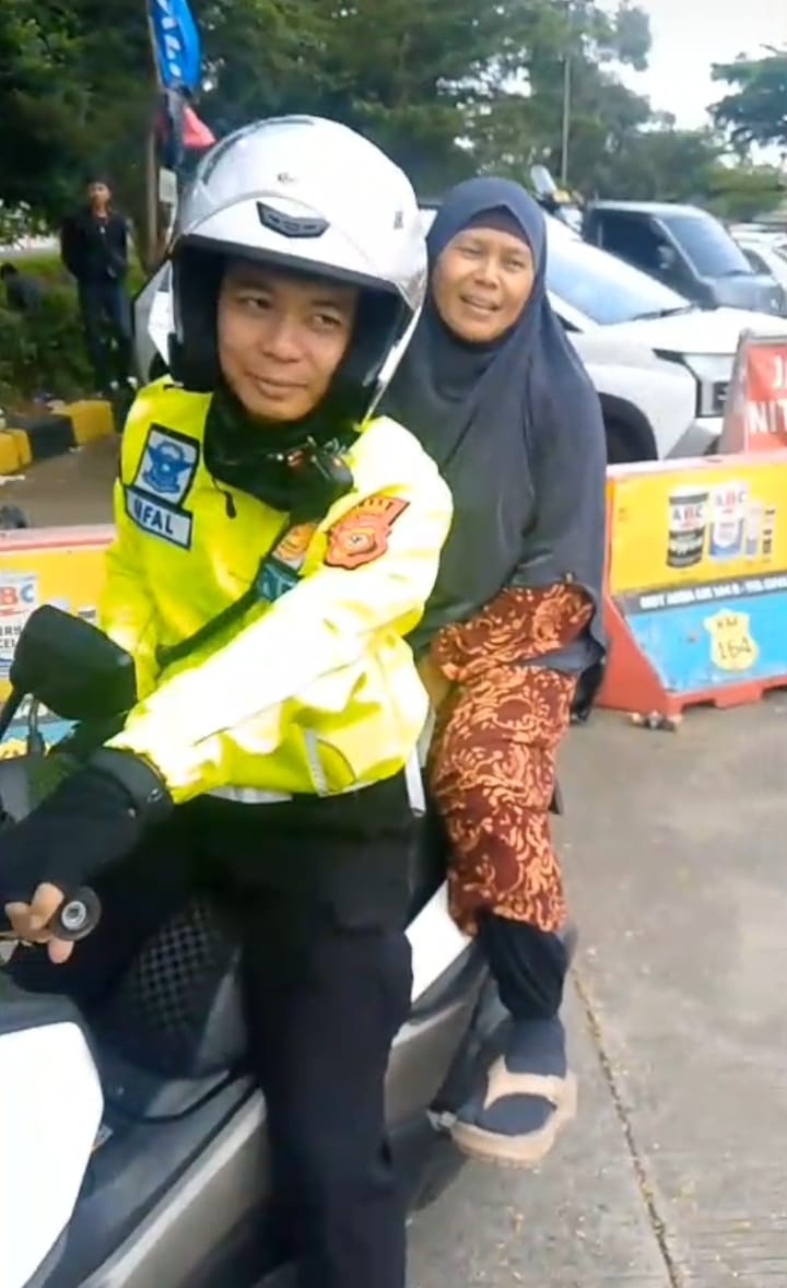 Personel Sat Lantas Polres Majalengka Antar Ibu Pemudik yang Tertinggal di Rest Area KM 164 menuju Gate Tol Kertajati