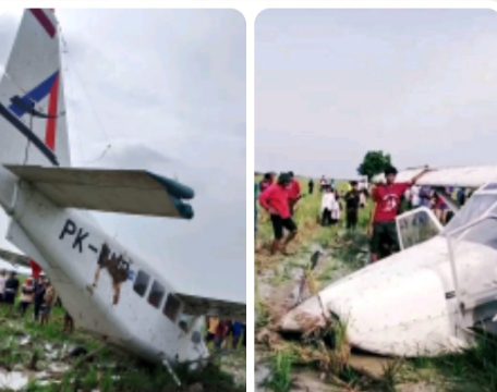 Pesawat Cessna terjatuh diarea persawahan, beruntung tidak ada korban jiwa