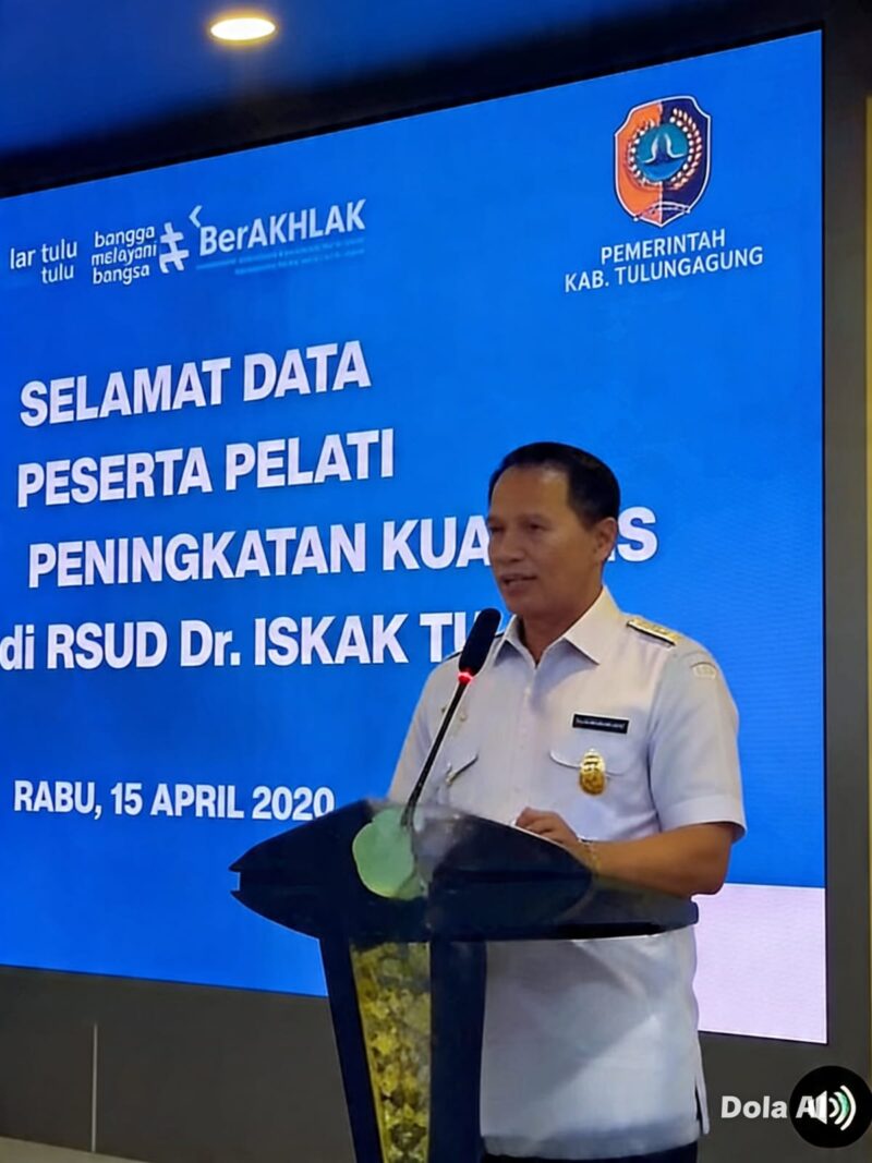 TULUNGAGUNG, Nasionaldetik.com – Pelaksana Tugas (Plt) Bupati Tulungagung, Ahmad Baharudin, secara resmi membuka kegiatan pelatihan peningkatan mutu dan kualitas pelayanan kesehatan di RSUD dr. Iskak Tulungagung. Kegiatan tersebut berlangsung di Gedung Auditorium IDIK lantai 2, Rabu (15/4/2026).