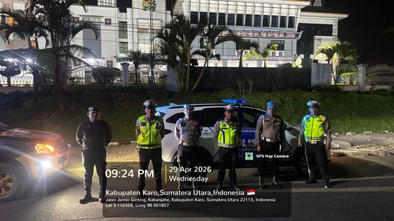 – Guna menjaga situasi keamanan dan ketertiban masyarakat tetap kondusif, jajaran Polres Karo kembali melaksanakan patroli malam pada Rabu(29/4/2026) sekira pukul 23.00 WIB di seputaran Kota Kabanjahe.