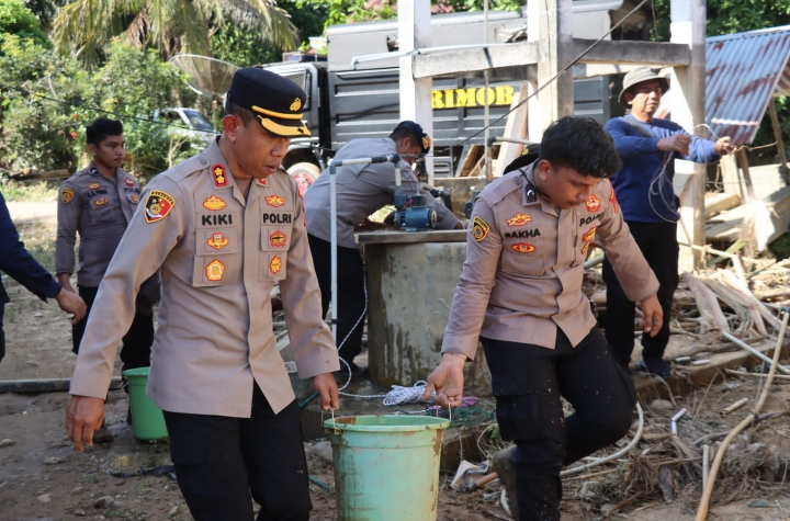 Kegiatan ini, yang dipimpin langsung oleh Kapolres Merangin AKBP Kiki Firmasyah Effendi, S.I.K.,M.H., merupakan wujud kepedulian aparat serta upaya mitigasi pascabencana.