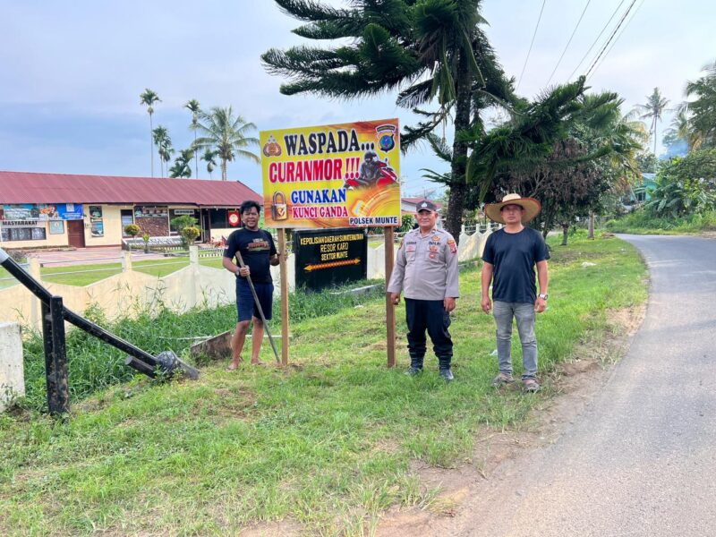 – Polsek Munte melaksanakan kegiatan pemasangan spanduk imbauan kepada masyarakat agar waspada terhadap tindak pidana pencurian kendaraan bermotor (curanmor) di wilayah Kecamatan Munte, Kabupaten Karo, Kamis (23/4/2026) sekira pukul 17.00 WIB.