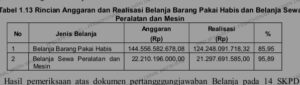 (Rp6.890.904.700,00 + Rp229.634.000,00) dan kurang saji Belanja Barang