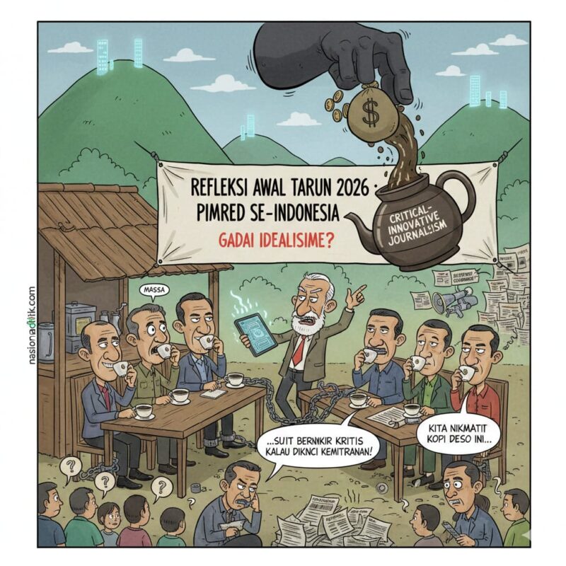 Nasionaldetik.com,– Memasuki hari pertama tahun 2026, sejumlah Pemimpin Redaksi (Pimred) media nasional yang tergabung dalam lintas jejaring media Indonesia menggelar pertemuan strategis di sebuah “Warkop Deso” di kaki perbukitan Majalengka, Jawa Barat, Kamis (1/1/2026).