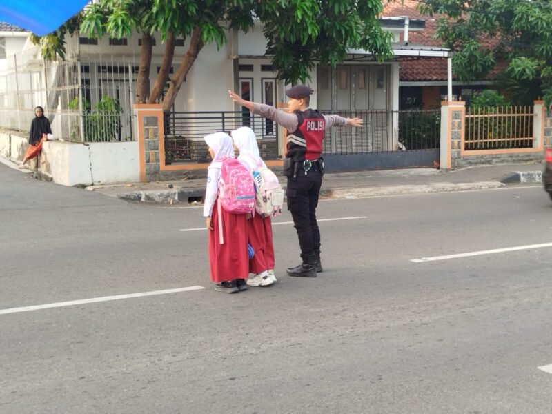 Personel Sat Samapta terlihat hadir di persimpangan jalan, depan sekolah, area pasar, dan pusat keramaian lainnya untuk membantu kelancaran arus lalu lintas serta menyeberangkan pelajar dan warga.