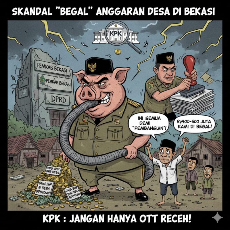 Nasionaldetik.com, – 22 Desember 2025 Kabupaten Bekasi kembali diguncang isu korupsi sistematis. Pimpinan Umum Media Rajawali News Group, Ali Sopyan, secara tegas mendesak Komisi Pemberantasan Korupsi (KPK) untuk segera turun tangan memeriksa dugaan “pembegalan” dana Bagi Hasil Pajak (BHP) dan Bagi Hasil Retribusi (BHR) yang seharusnya menjadi hak pemerintah desa di seluruh Kabupaten Bekasi.