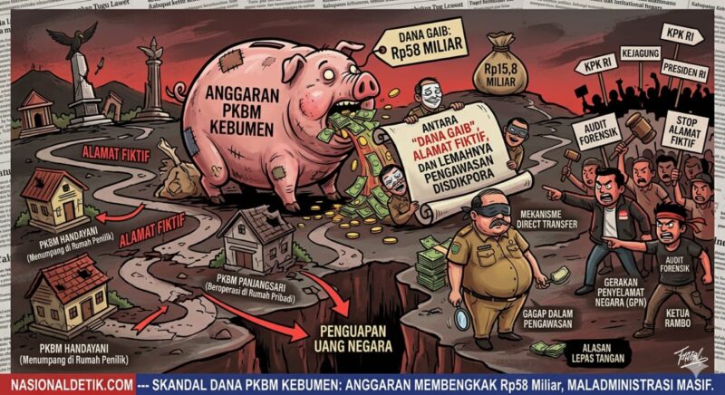 Nasionaldetik.com,— 24 April 2026 Tabir gelap yang menyelimuti pengelolaan anggaran Pusat Kegiatan Belajar Masyarakat (PKBM) di Kabupaten Kebumen mulai tersingkap, namun justru menyisakan aroma penyimpangan yang lebih menyengat. Dalam sosialisasi kebijakan di Aula Ki Hajar Dewantara, Senin (20/4), terungkap fakta bahwa total alokasi anggaran yang dikelola melonjak drastis menjadi **Rp58 miliar**, jauh melampaui angka **Rp15,8 miliar** yang selama ini beredar di publik.
