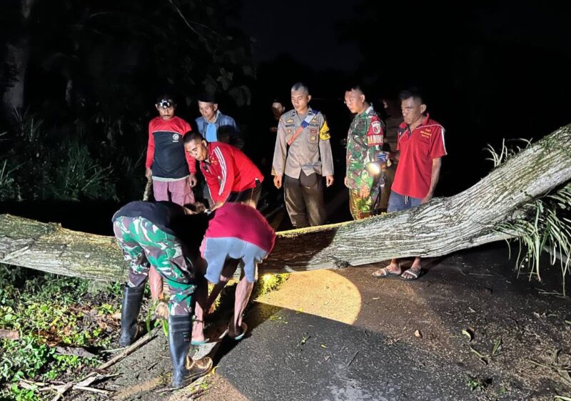 Dengan menggunakan peralatan seadanya, aparat TNI-Polri bersama masyarakat melakukan pemotongan batang dan ranting pohon akasia yang menutup jalan. Proses pembersihan dilakukan secara gotong royong hingga potongan pohon berhasil disingkirkan dari badan jalan sehingga kendaraan kembali dapat melintas dengan aman.